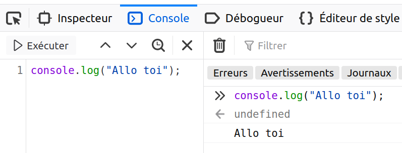 Dans Firefox et Chrome, on ouvre la console du navigateur avec la touche F12.